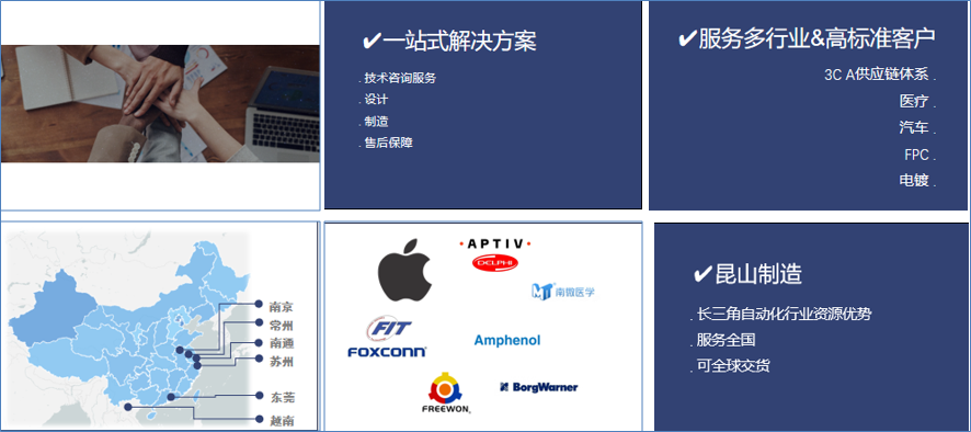 主營高標準非標定制設備,3C、電鍍、沖壓、FPC、成型等多行業(yè)上下料設備,視覺類軟硬件設備,并提供相關技術支持和整套解決方案。 自有視覺團隊提供非標設備常規(guī)視覺服務。與業(yè)界頂尖視覺公司長期合作,一站式提供外觀檢AI深度學習服務。